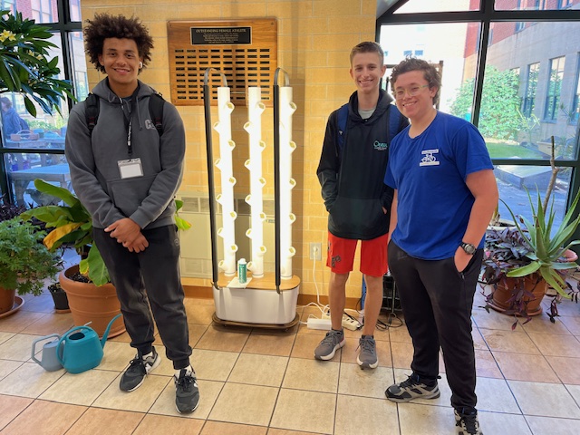 Students will be in charge of starting lettuce seed in a humidity chamber and transplanting them to the vertical NFT system (nutrient film technique). They will then monitor the nutrients and pH of the system, as well as the growth of the lettuce. Students will determine which varieties of lettuce do best in our outdoor greenhouse conditions by monitoring the temperature and light received by the growing lettuce. Students will then harvest the lettuce and deliver it to the school cafeteria for consumption.