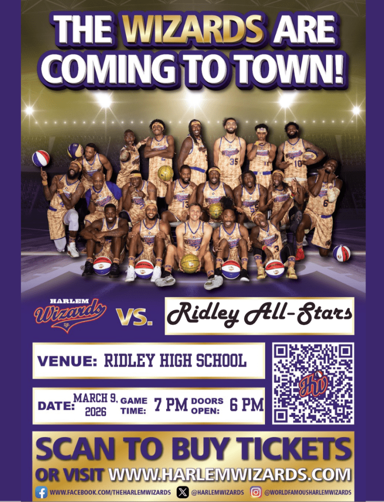 It was a terrific night of fun filled basketball when the Ridley All-Stars took on the Harlem Wizards in a spirited game filled with dunks, ally-oops, and trick shots. More than 1,000 people were on hand to experience the game. Thanks to everyone who participated to make this a tremendously successful event. See you next year!